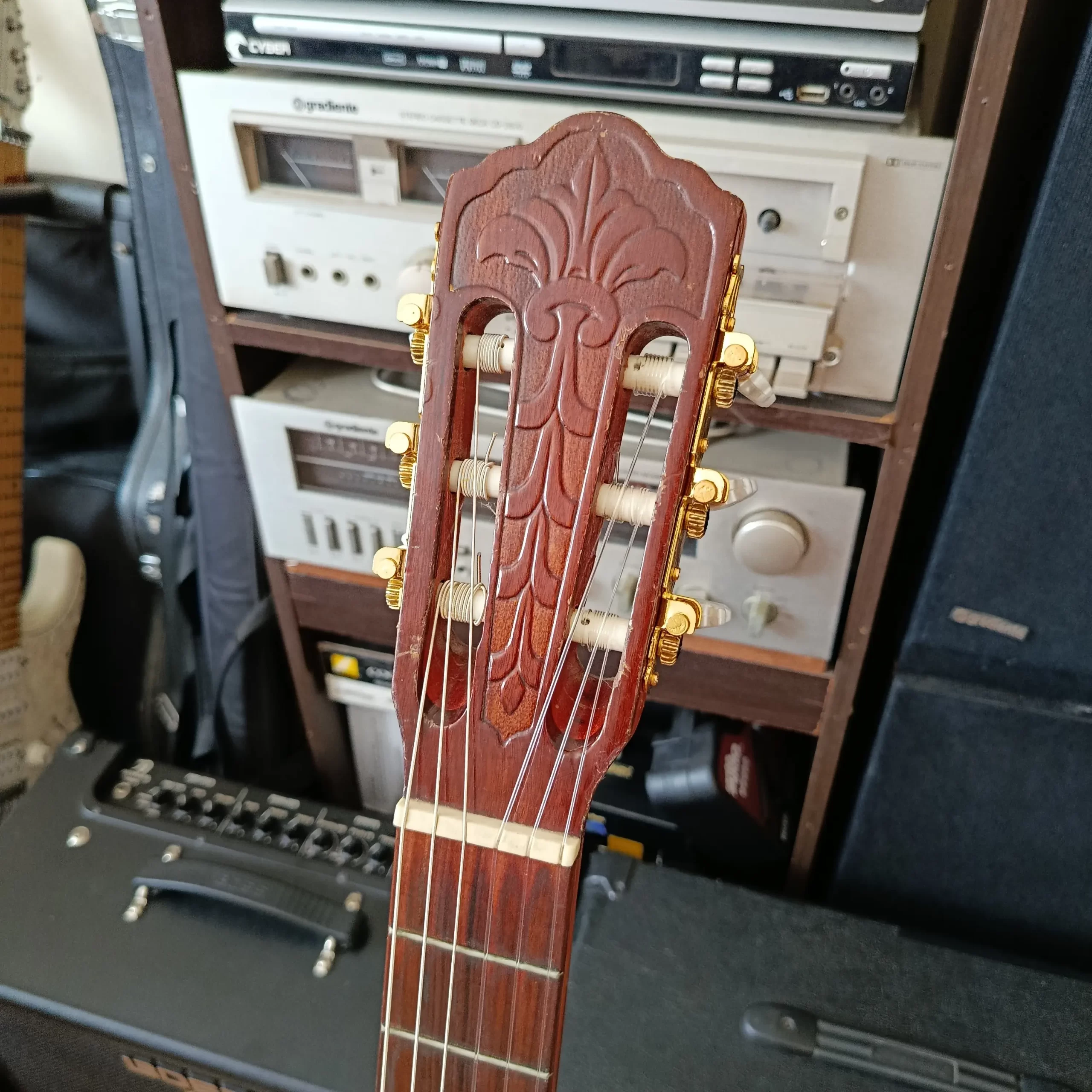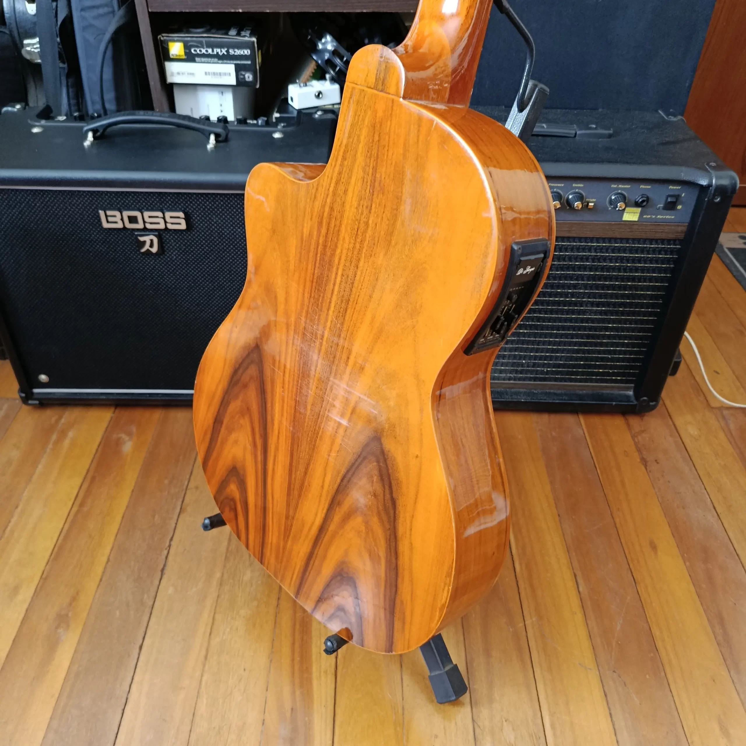 Funcionando perfeitamente. Possui uma marca de adesivo no tampo. Não acompanha capa. Cordas novas. Produto usado. Fotos reais.